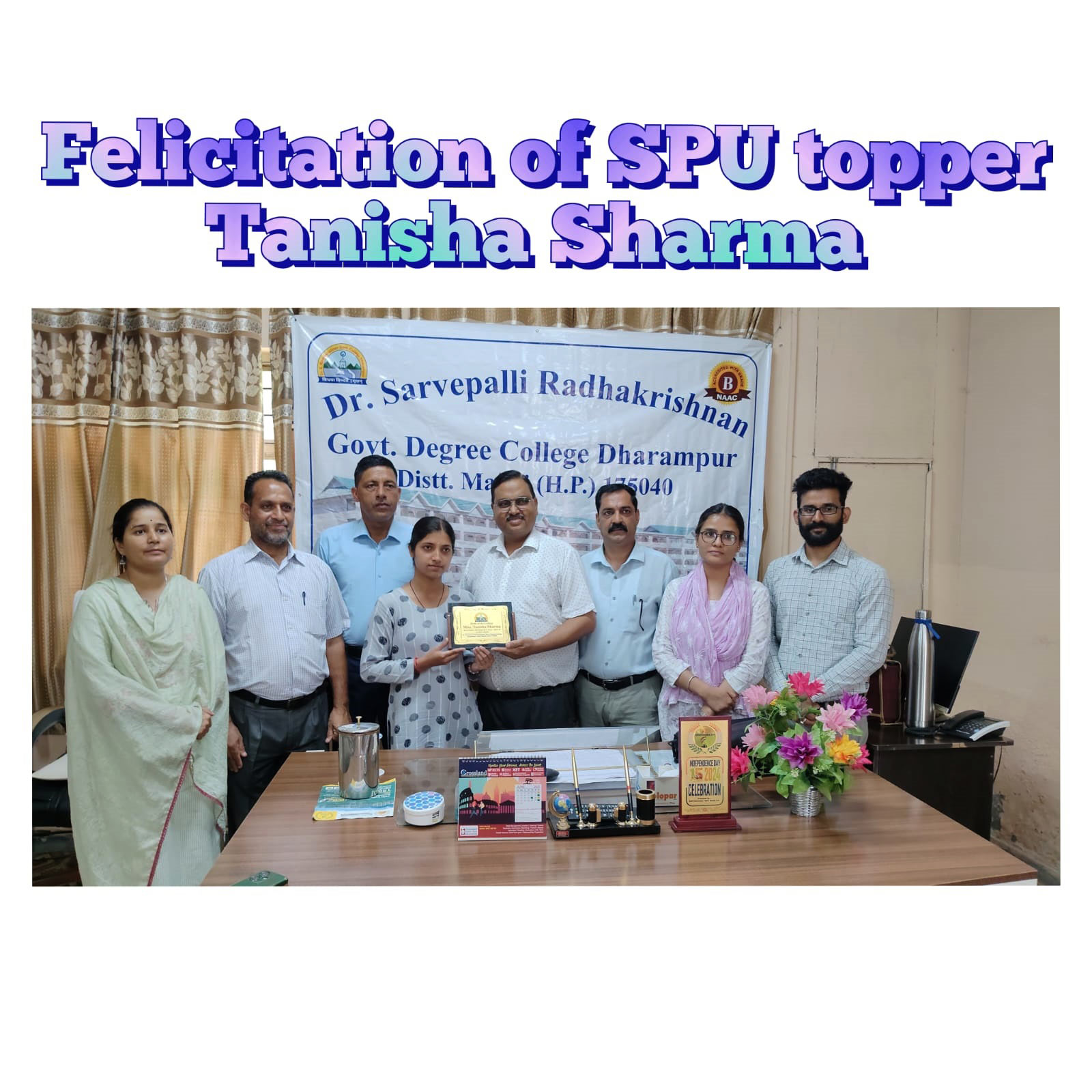 Falicitation of SPU Topper Miss Tanisha Sharma