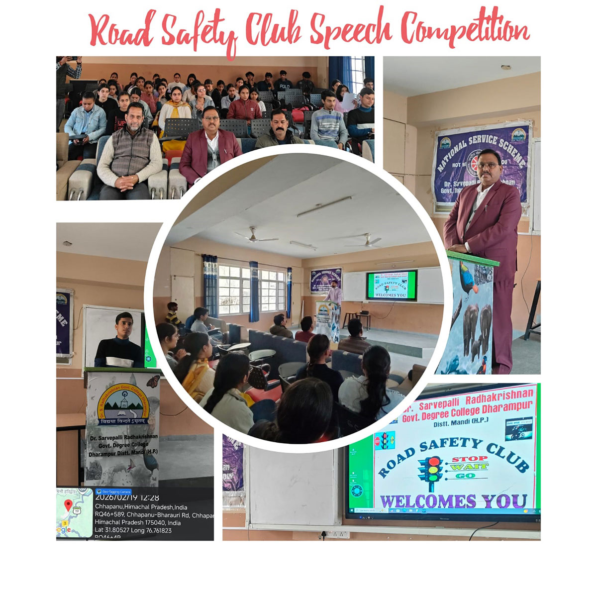 The Road Safety Club of Dr. Sarvepalli Radhakrishnan Govt. Degree College, Dharampur is a student-led initiative committed to fostering road safety awareness and reducing accidents through education, advocacy, and community engagement. Its primary aims include promoting adherence to traffic rules, encouraging responsible behaviours like helmet and seatbelt usage, and collaborating with local authorities. To achieve these goals, the club conducts quizzes, seminars, slogan writing and poster making and awareness rallies distributes educational materials, and organizes rallies or social media campaigns to sensitize the public. It also trains members in first-aid and emergency response. By empowering students and residents with knowledge and practical skills, the club strives to create a culture of vigilance and shared responsibility, ensuring safer roads for the Dharampur community.